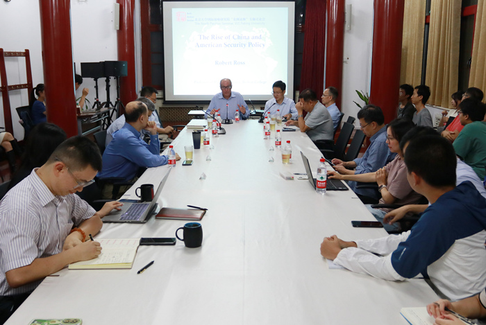 On the evening of September 14, 2023, the Institute of International and Strategic Studies (IISS), Peking University (PKU) hosted lecture series under the 67th North Pavilion Seminar, titled "The Rise of China and American Security Policy." The lecture was delivered by Robert Ross, Professor of Political Science at Boston College and Researcher at the Fairbank Center for Chinese Studies at Harvard University. The event was chaired by Gui Yongtao, Vice President of IISS and Associate Dean of the School of International Studies (SIS), PKU.