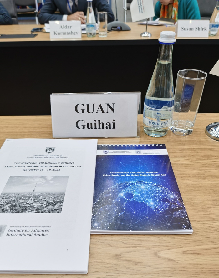 From November 14 to 18, 2023, Guan Guihai, Executive Vice President of the Institute of International and Strategic Studies (IISS), Peking University (PKU), traveled to Tashkent, Uzbekistan on invitation to attend the trilateral dialogue meeting "China-U.S.-Russia in Central Asia". The event was co-hosted by the Monterey Institute of International Studies and the University of World Economy and...[Full Article]