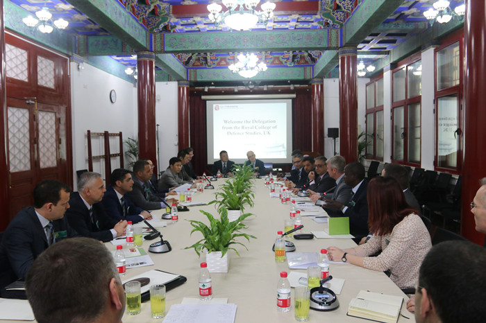 On the morning of May 8th, 2018, a 19-member delegation of British Royal College of Defence Studies, led by Sir Tom Phillips KCMG, visited the Institute of International and Strategic Studies (IISS), Peking University (PKU). The two sides discussed hot issues in the field of security in the Asia-Pacific region. The seminar was held at the North Pavilion, hosted by Yu Tiejun, Associate Professor and Vice President of IISS and attended by Associate Prof. Gui Yongtao, Assistant President of IISS, Jie Dalei, Associate Professor of School of International Studies, PKU, and Li Chen, Lecturer at School of International Studies, Renmin University of China.