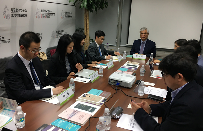 At the invitation of Korea Foundation, the Institute of International and Strategic Studies (IISS), Peking University (PKU) delegation paid a visit to Korea from April 17 to 21, 2017. Members of the delegation include: Associate Professor Guan Guihai, Vice President of IISS, PKU; Associate Professor Gui Yongtao, Assistant President of IISS, PKU; Li Tingting, Assistant Professor of the School of Foreign Language, PKU; Li Chen, Lecturer of the School of International Studies, Renmin University of China; Pan Nini, Associate Professor of the Institute for Advanced Studies in Humanities and Social Sciences, Chongqing University; Wu Xiangning, Researcher of the School of International Relations, Sun Yat-sen University and Li Fangqi, Administrative Assistant of IISS, PKU. The delegation paid visits to government departments and research institutes, including Korea National Diplomatic Academy, Sungkyunkwan University, the Asan Institute for Policy Studies, the Sejong Institute and Institute for National Security Studies, Korea National Defense University. Both sides exchanged views on China-South Korea relations and situations in Northeast Asian Region issues.
