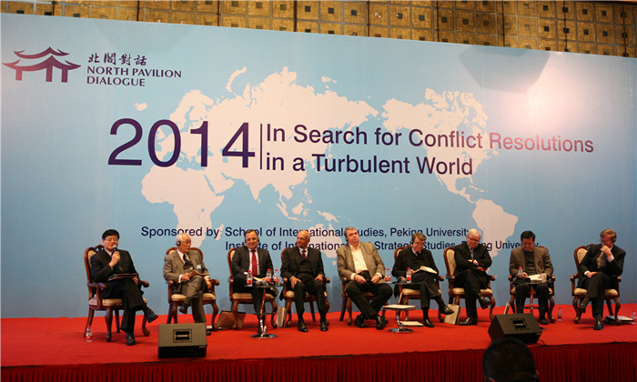 The first "North Pavilion Dialogue" annual meeting, hosted by the Institute of International & Strategic Studies (IISS), Peking University (PKU) and sponsored by Chinese People's Institute of Foreign Affairs (CPIFA), was held at PKU from December 2 to 3, 2014. 11 foreign former political leaders and strategists, including former Australian Prime Minister Kevin Rudd, former US Deputy Secretary of State Robert Zoellick, and former Indian National Security Advisor Shivshankar Menon, as well as heads of some think tanks and experts and scholars from related fields in China participated in the dialogue. Dai Bingguo, former State Councilor and honorary president of IISS, PKU also attended the dialogue.