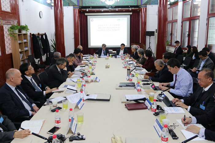 On the afternoon of October 31st, the School of International Studies and IISS, PKU co-organized an open forum on “Disintegration in a Globalizing World” where guests, such as Joseph Nye, Jr., Thierry de Montbrial, Andrey Kortunov, Volker Perthes, Nabil Fahmy, Shivshankar Menon, George Yeo and Wang Yizhou, had heated discussion on the theme of the meeting and interacted actively with the audience.